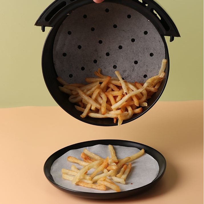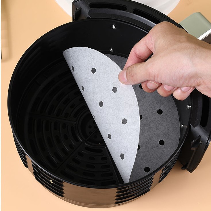 Giấy Nến Cho Nồi Chiên Không Dầu Đục Lỗ Set 100 Tờ Tròn 23cm Chống Dính Lót Bánh Bao