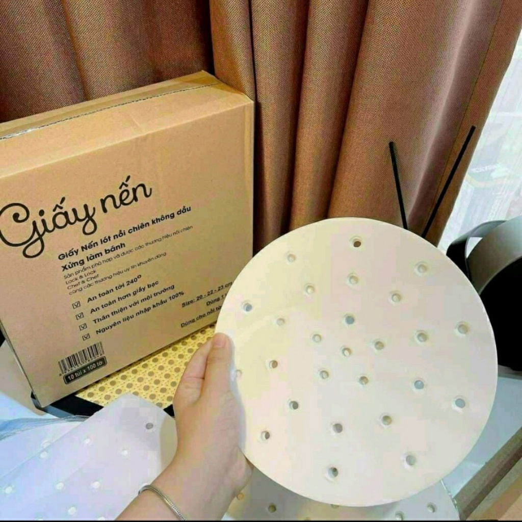 Giấy nến cho nồi chiên không dầu , Giấy nến đục lỗ làm bánh (Set 100 tờ size 25cm)