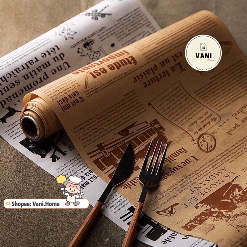 Giấy nến cho nồi chiên không dầu nướng bánh nướng thịt - Giấy lót nồi chiên, gói bánh hoạ tiết tờ báo thấm dầu mỡ tốt