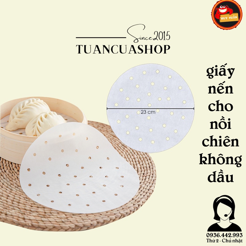 Giấy nến cho nồi chiên không dầu hình tròn đục lỗ set 100 tờ, giấy thấm dầu ăn, lót xửng hấp (GN23)
