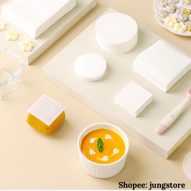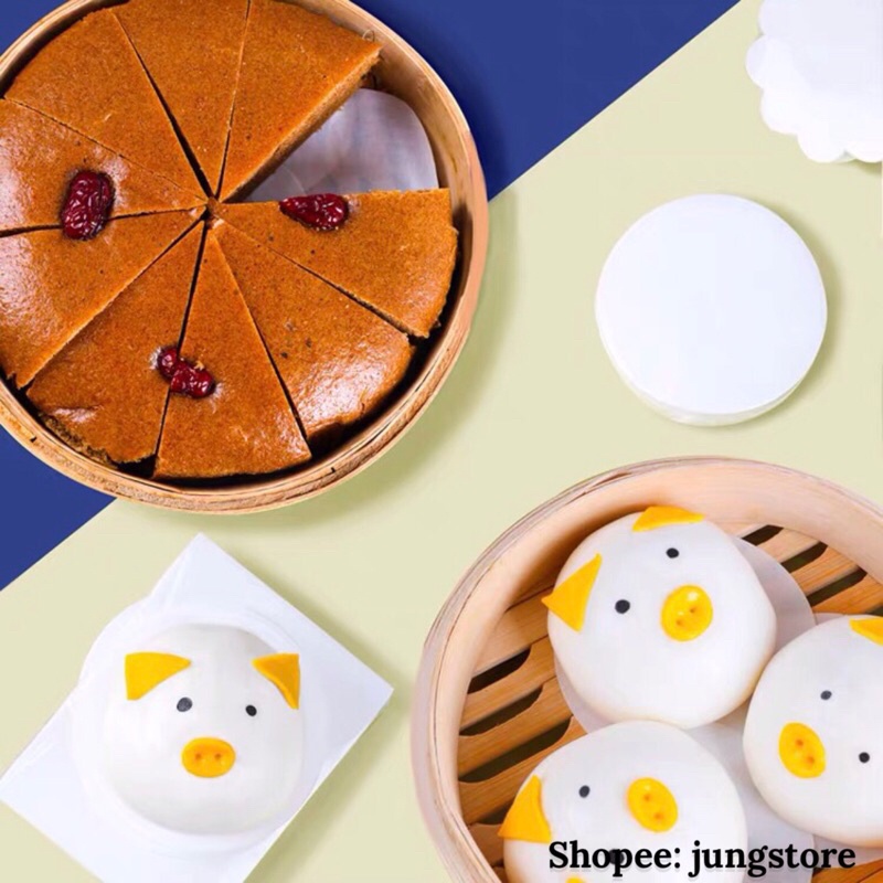 Giấy nến chống dính lót bánh bao, há cảo, dimsun, giấy lót cắt sẵn hình tròn, vuông nhiều kích thướcƯu điểm: