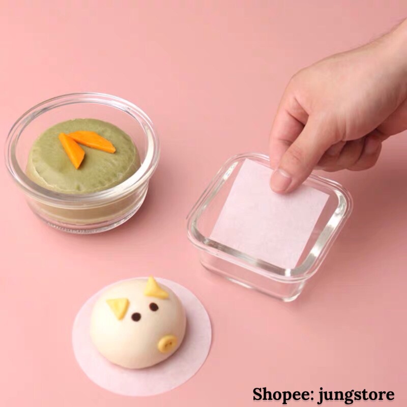 Giấy nến chống dính lót bánh bao, há cảo, dimsun, giấy lót bánh cắt sẵn hình tròn, vuông nhiều kích thước 50 tờ