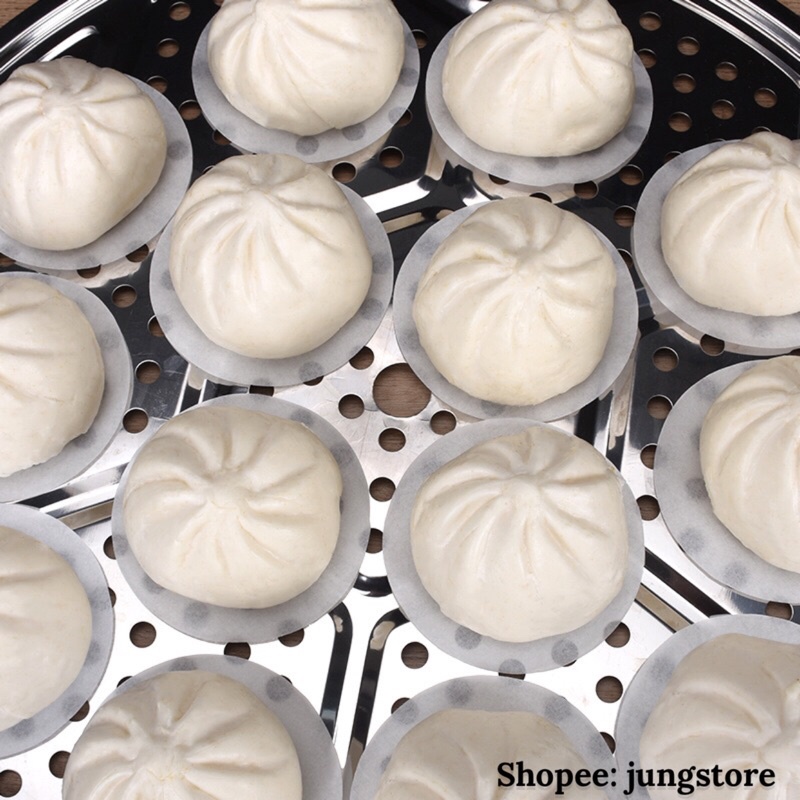 Giấy nến chống dính lót bánh bao, há cảo, dimsun, giấy lót cắt sẵn hình tròn, vuông nhiều kích thướcƯu điểm: