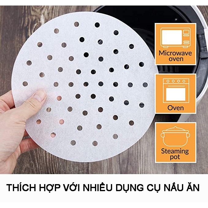 Giấy nến đục lỗ 100 tờ / thếp lót xửng, nồi chiên không dầu