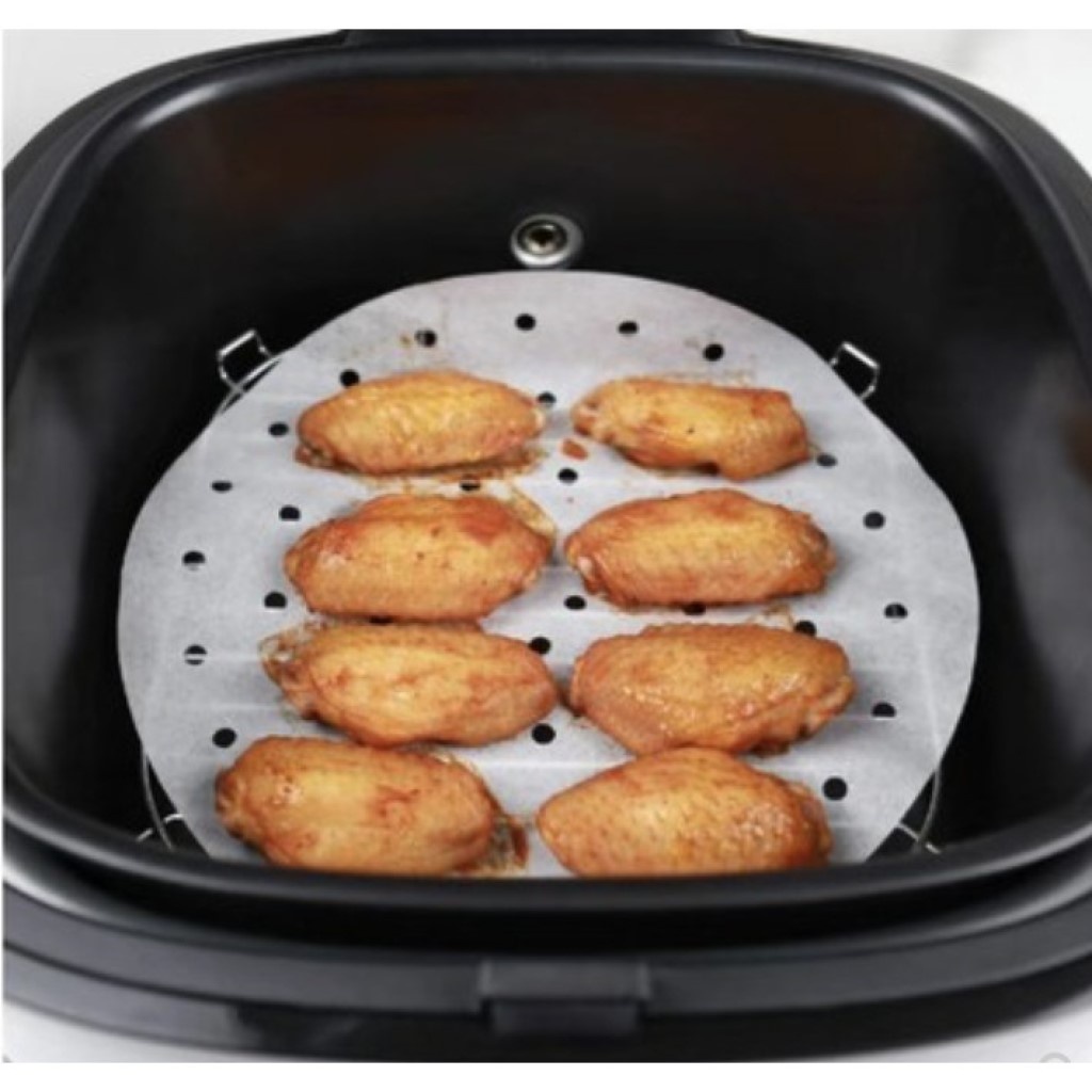 Giới thiệu Giấy nến đục lỗ hình tròn size 23cm - Tệp 100 tờ giấy nến cho nồi chiên không dầu (khosithuanthanh)