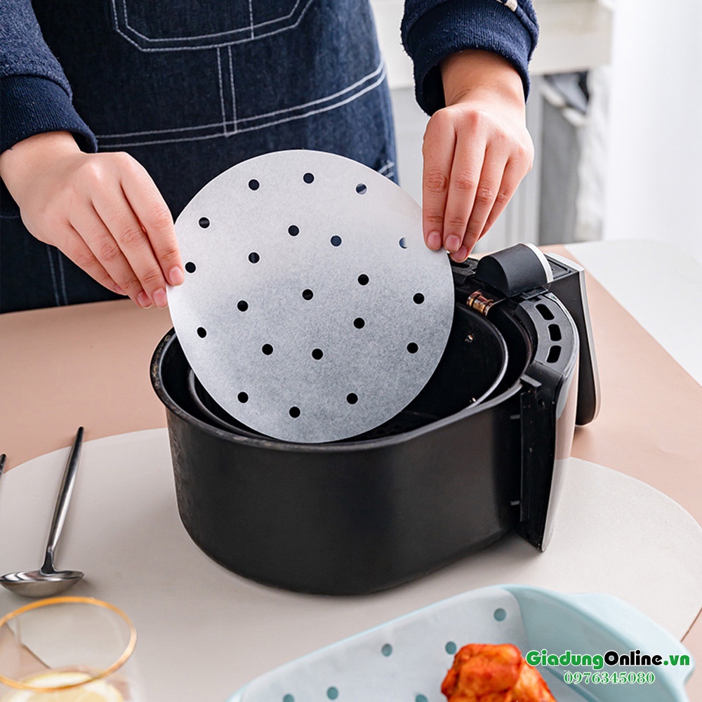 - Giấy lót chống dính dùng được trong lò nướng và nồi chiên không dầu, chịu được nhiệt cao trong thời gian dài mà không ảnh hưởng chất lượng món ăn.