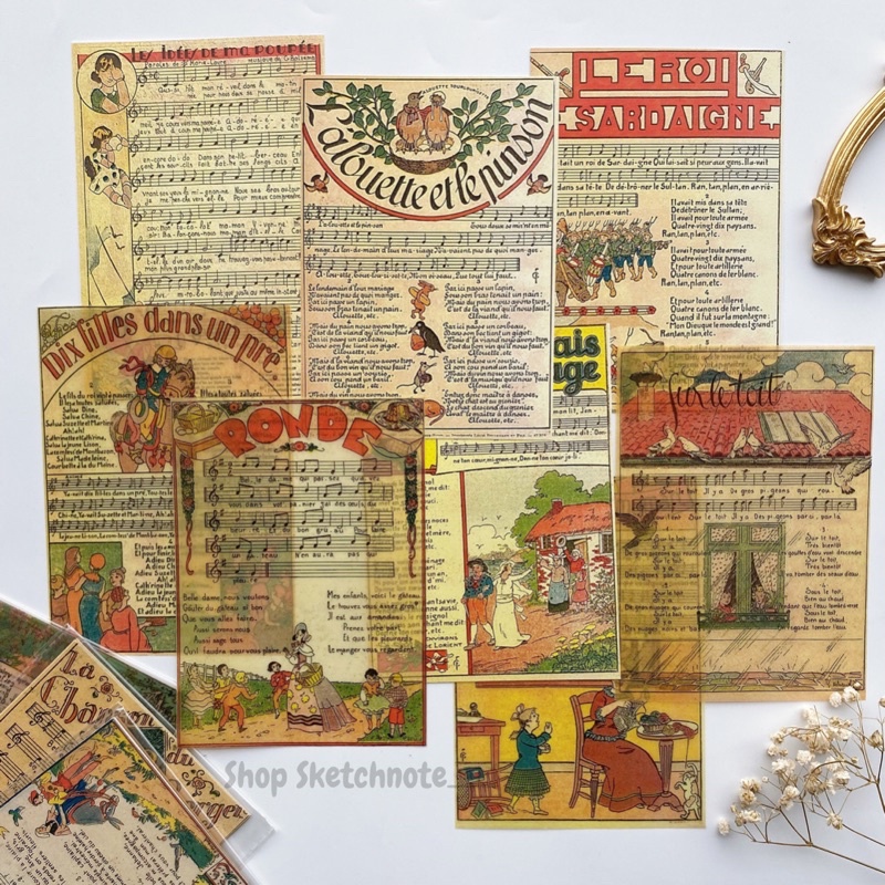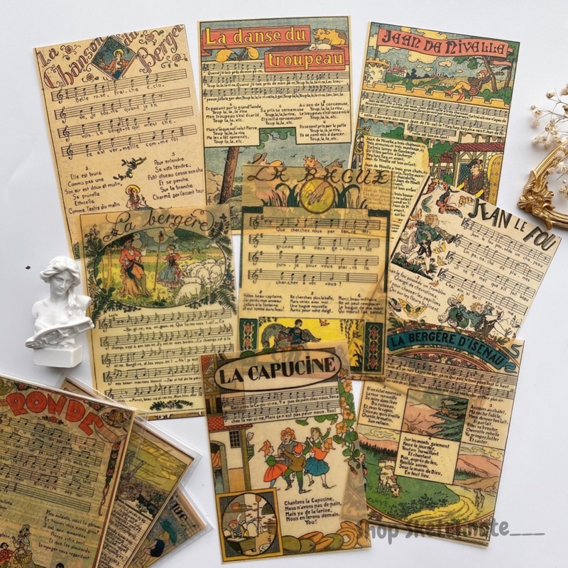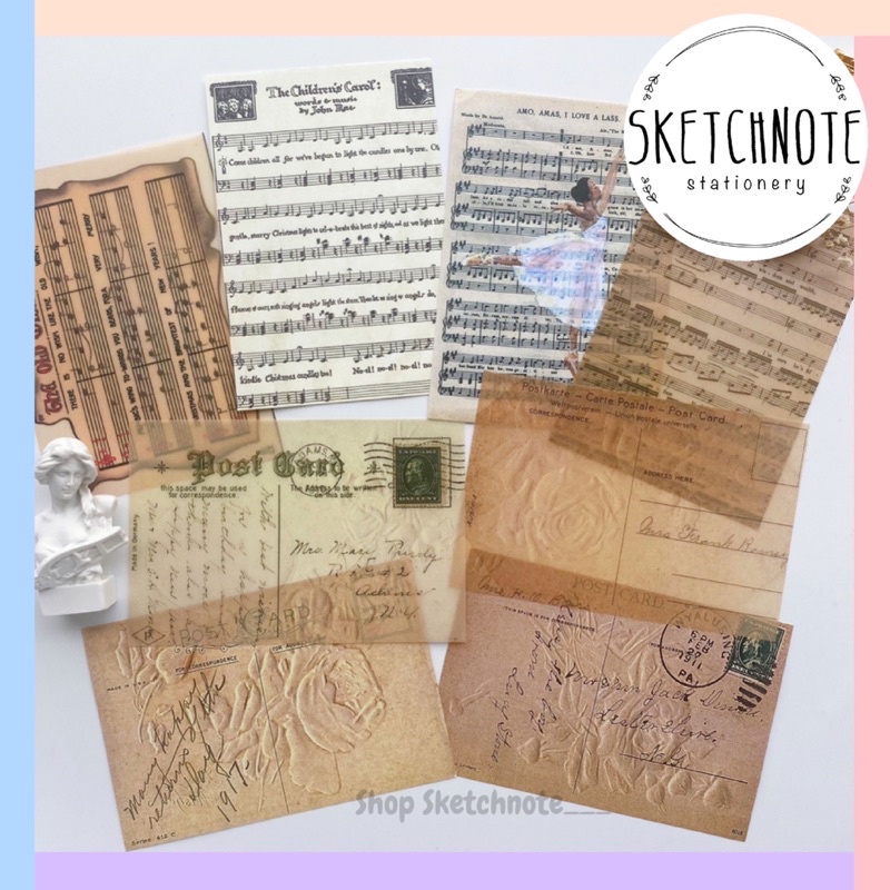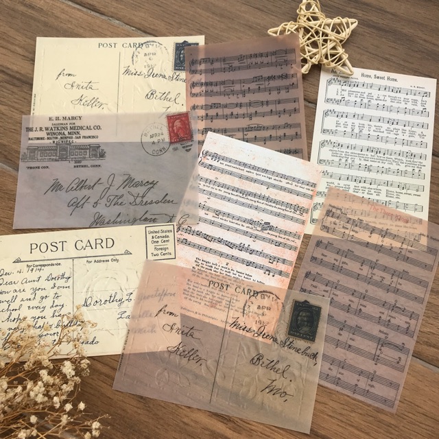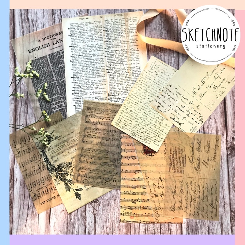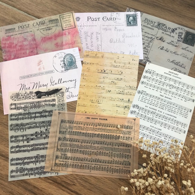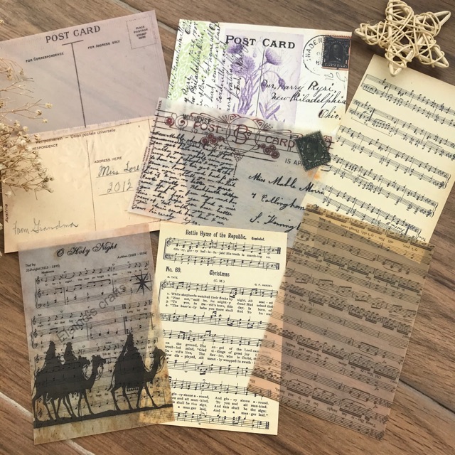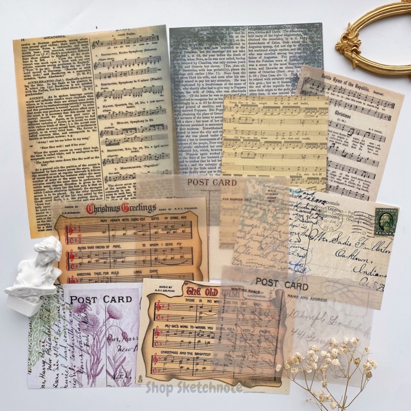 Set background vintage mix☛ set 8 tờ: 4 bản nhạc + 4 lá thư hình ngẫu nhiên size A6