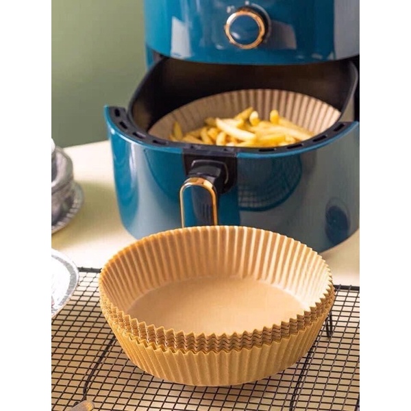 Giới thiệu Giấy Nến Lót Nồi Chiên Không Dầu Hình Khuôn Bánh, Giấy nến vàng khay lót nồi chiên không dầu 1 tệp 50 tờ cực tiện không