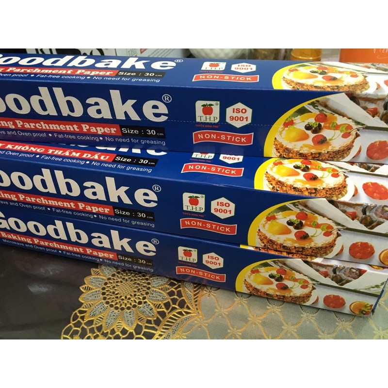 Nhà cửa & Đời sống > Dụng cụ nhà bếp > Dụng cụ nướng & trang trí bánh || Giấy nến nướng bánh không thấm dầu Goodbake dùng để lót nướng bánh, dùng tốt cho nồi chiên không dầuCòn hàng