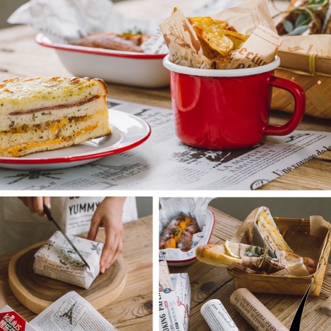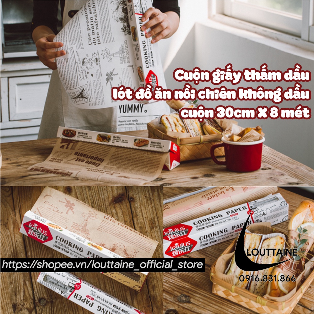 Giấy nến nướng bánh lót nồi chiên không dầu cuộn khổ ngang 30 cm dài 8 mét in hình giấy báo