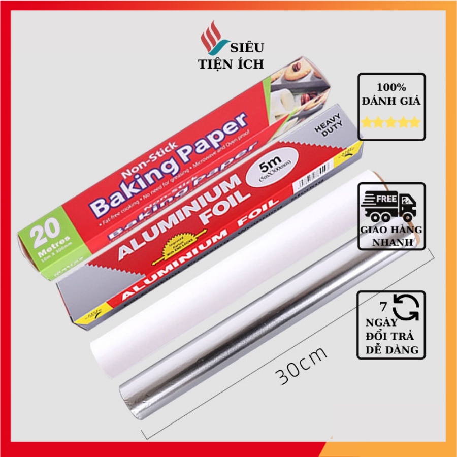 Giấy nến nướng bánh, nướng thức ăn chịu nhiệt chống dính dùng cho nồi chiên không dầu, giấy bạc bọc thực phẩm 30x10m