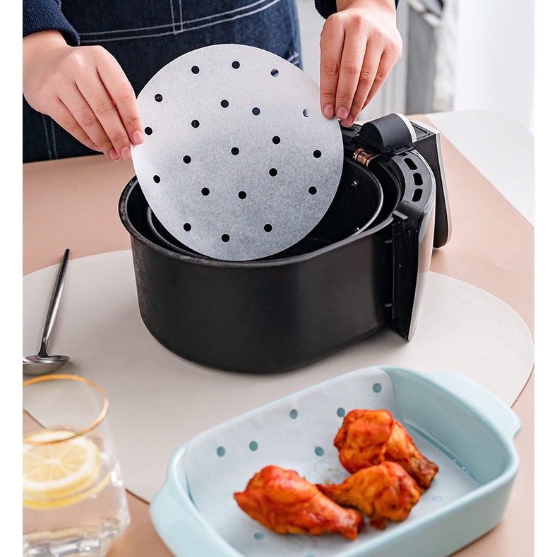 Giấy nến tròn đục lỗ 100 tờ dùng cho nồi chiên không dầu, lót xửng hấp bánh - Đồ gia dụng, dụng cụ nhà bếp thông minh