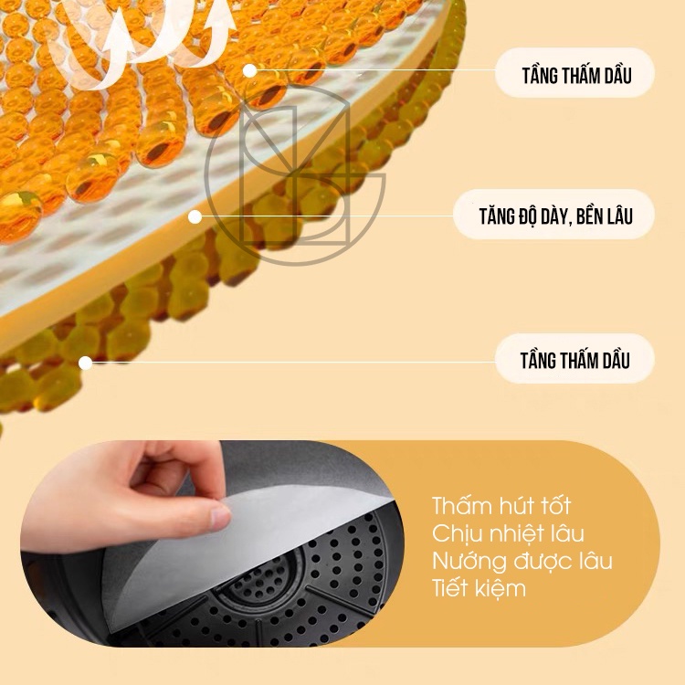 Giới thiệu Giấy Nến tròn hút dầu mỡ thực phẩm, dùng cho nồi chiên không dầu, có lỗ và không lỗ