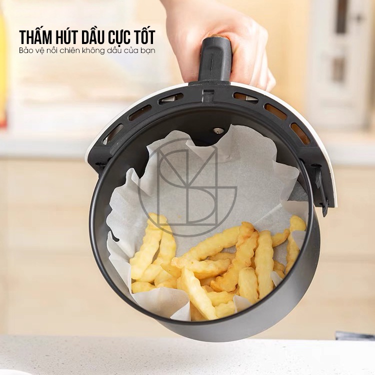 Giấy Nến tròn hút dầu mỡ thực phẩm, dùng cho nồi chiên không dầu, có lỗ và không lỗ