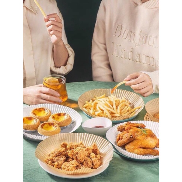 Giới thiệu Giấy nến vàng khay lót nồi chiên không dầu 1 tệp 50 tờ cực tiện không gây hỏng nồi
