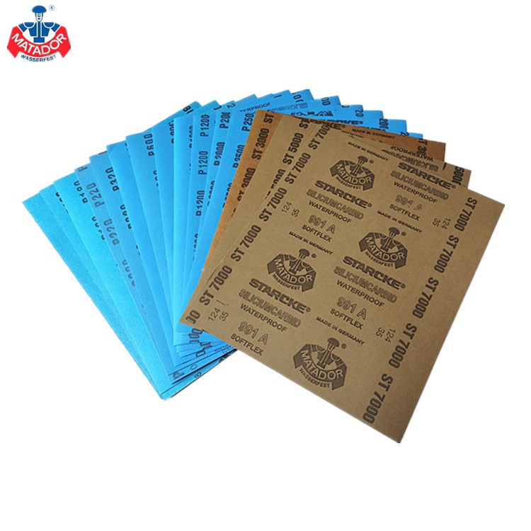 Giấy nhám chiến binh Đức MATADOR là một dòng da mềm của giấy chống thấm silicon carbide. Sử dụng khô và nước nó không dễ phá vỡ. Nó phù hợp cho đánh bóng: ngọc, đá, epoxy resin, trang sức, đá và đá, các kim loại khác nhau (vàng, bạc, đồng, nhôm, sắt, thép không gỉ và các kim loại đúc khác nhau. ), dụng cụ chính xác, gỗ rắn, nút chai, sơn mài và các vật liệu và sản phẩm khác đánh bóng bề mặt và đánh bóng.【TÊN】: Giấy nhám chiến binh Đức MATADOR