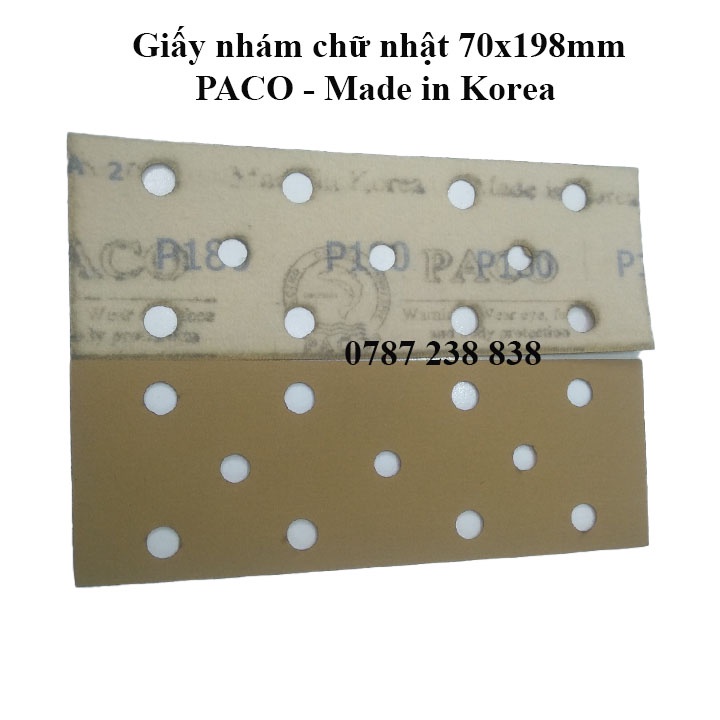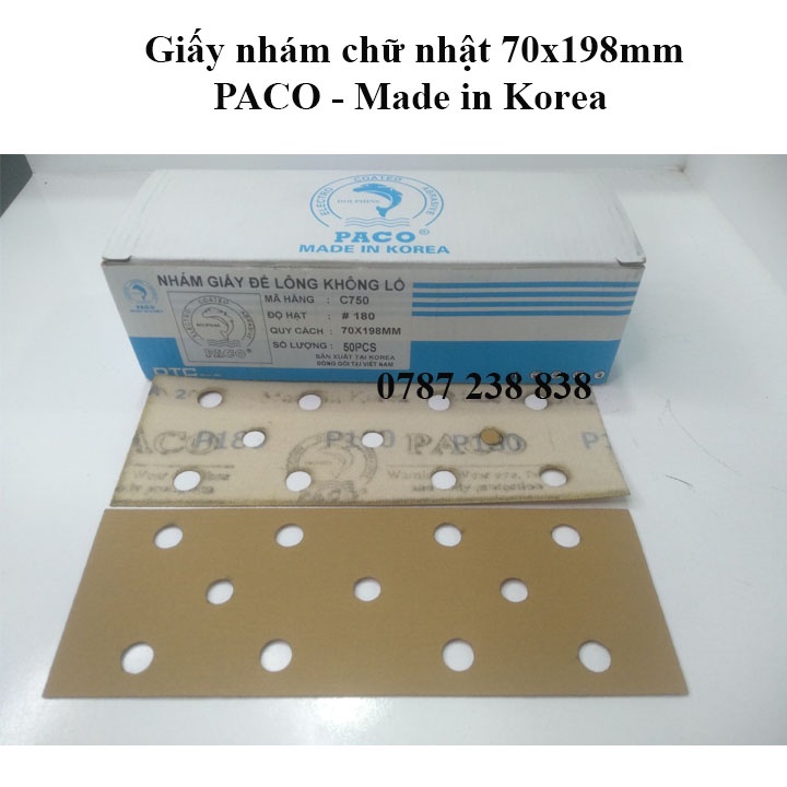 Giới thiệu Giấy Nhám chữ nhật PACO Hàn Quốc 70x198mm chuyên chà xe hơi mã C750 màu vàng 11 lỗ