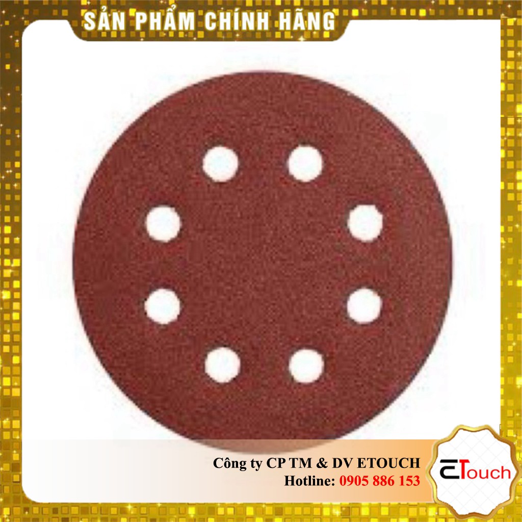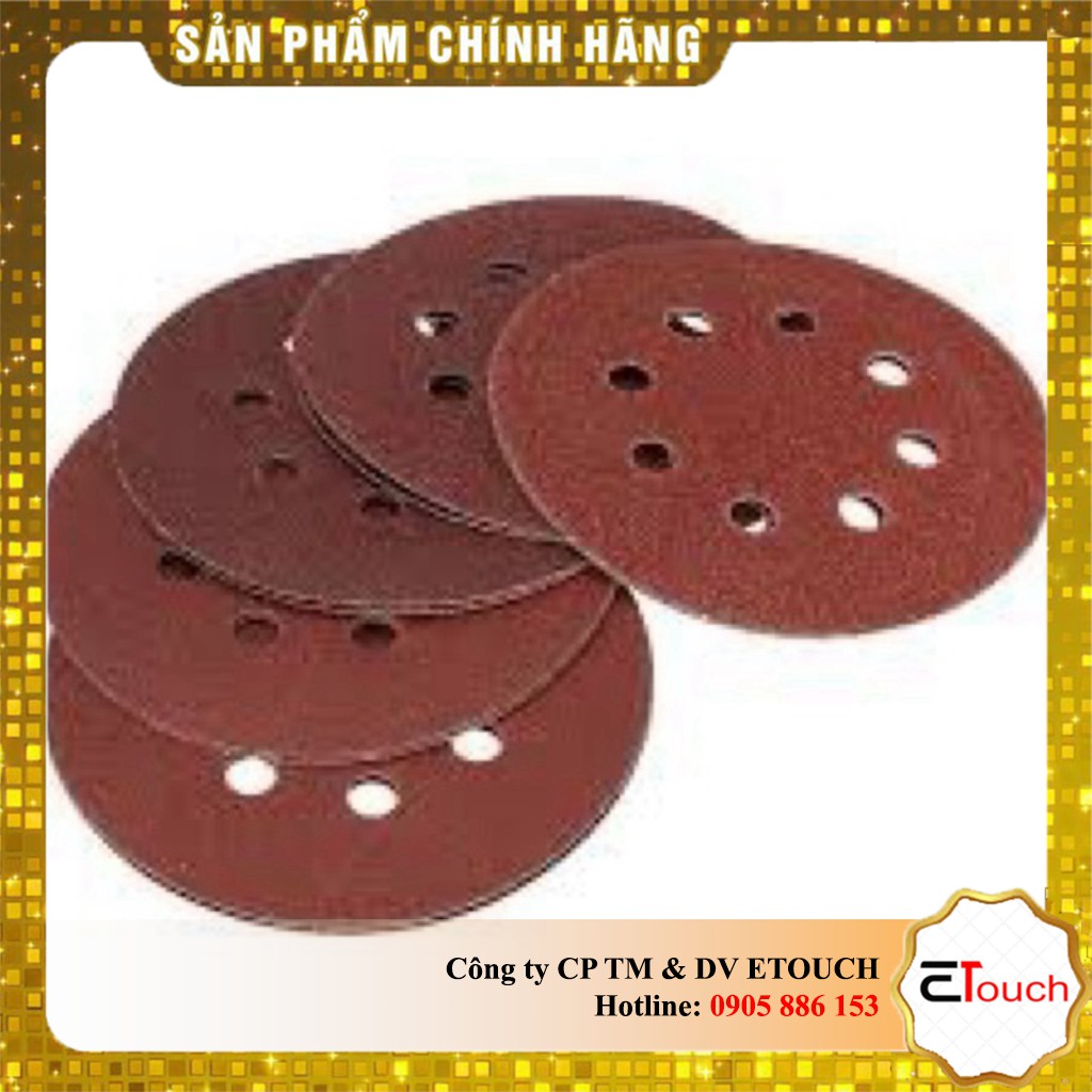 Tên sản phẩm: Giấy nhám tròn có lỗCông dụng: Giấy nhám tròn có lỗ đế lông, một sản phẩm hữu ích và tiện dụng cho những máy chà nhám xoay có hút bụi đi kèm, đa số sử dụng cho máy nhám sử dụng bình khí . Có nhiều số nhám khác nhau để lựa chọn cho những công việc phù hợp.