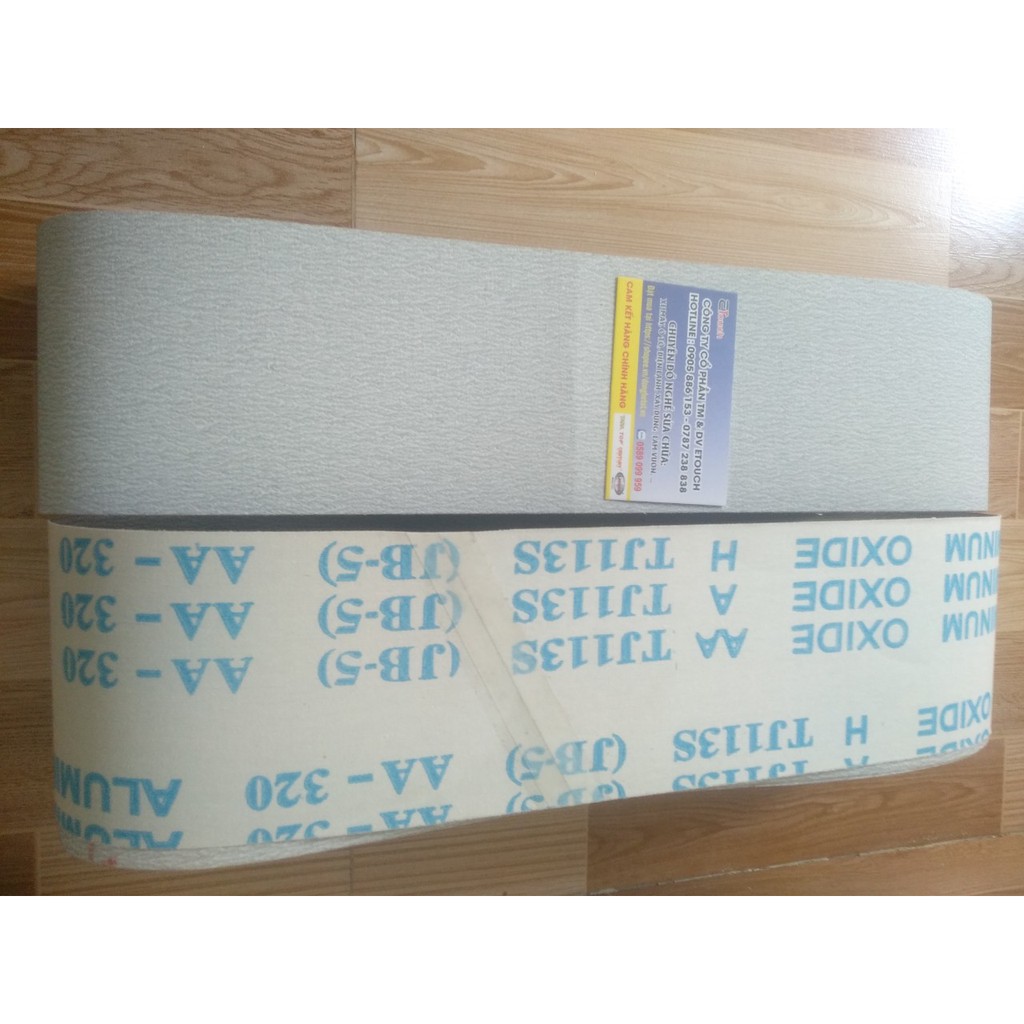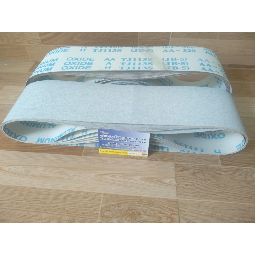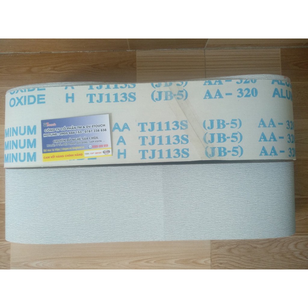 Công ty chúng tôi là đơn vị tiên phong trong sản xuất nhám vòng 100 x 915mm thương hiệu JB-5 mã vải TJ113S có đầy đủ độ nhám từ P120 - P150 - P180 - P240 - P320 - P400. Mối nối là chồng mí ép nhiệt, chuyên dùng cho: HỢP KIM NHÔM, ĐỒNG, KẼM, GỖHàng công ty sản xuất nên luôn luôn có sẵn hàng, công ty sẽ bảo hành toàn bộ mối nối của tất cả các sản phẩm.
