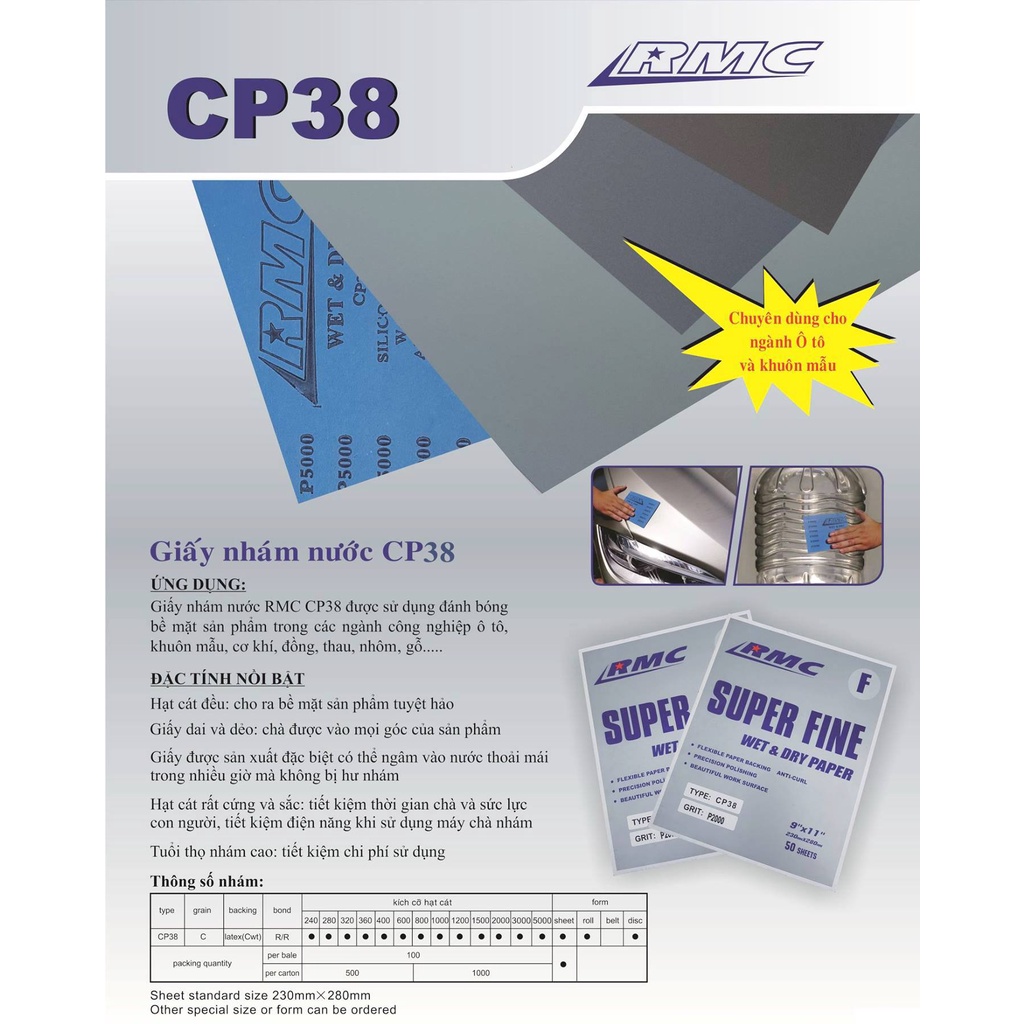 Giới thiệu Giấy nhám Nhật, nhám chà nước RMC C38 độ hạt P180 P240 P320 P400 P600 P800 P1000 P1200 P1500 loại cao cấp