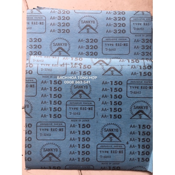 ĐẶC ĐIỂM- Giấy nhám nhật xanh SANKYO hay còn gọi là giấy ráp của hãng SANKYO được bán theo tờ và theo kích thước 230mm x 280mm.