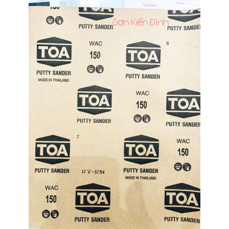 Giấy nhám khô chuyên dụng xả bột trét tường cao cấp TOA. Giấy rất dai, ko dễ rách và chà ko để lại sọc* Xuất xứ: Thái Lan