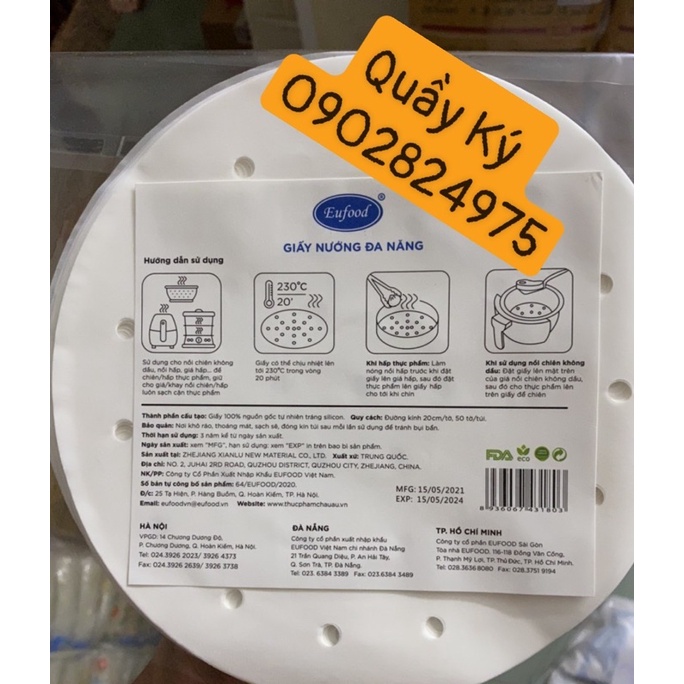 Giấy nướng đa năng cho nồi chiên không dầu nồi hấp Eufood 50 tờ/size ( nhỏ 20cm, lớn 23cm)