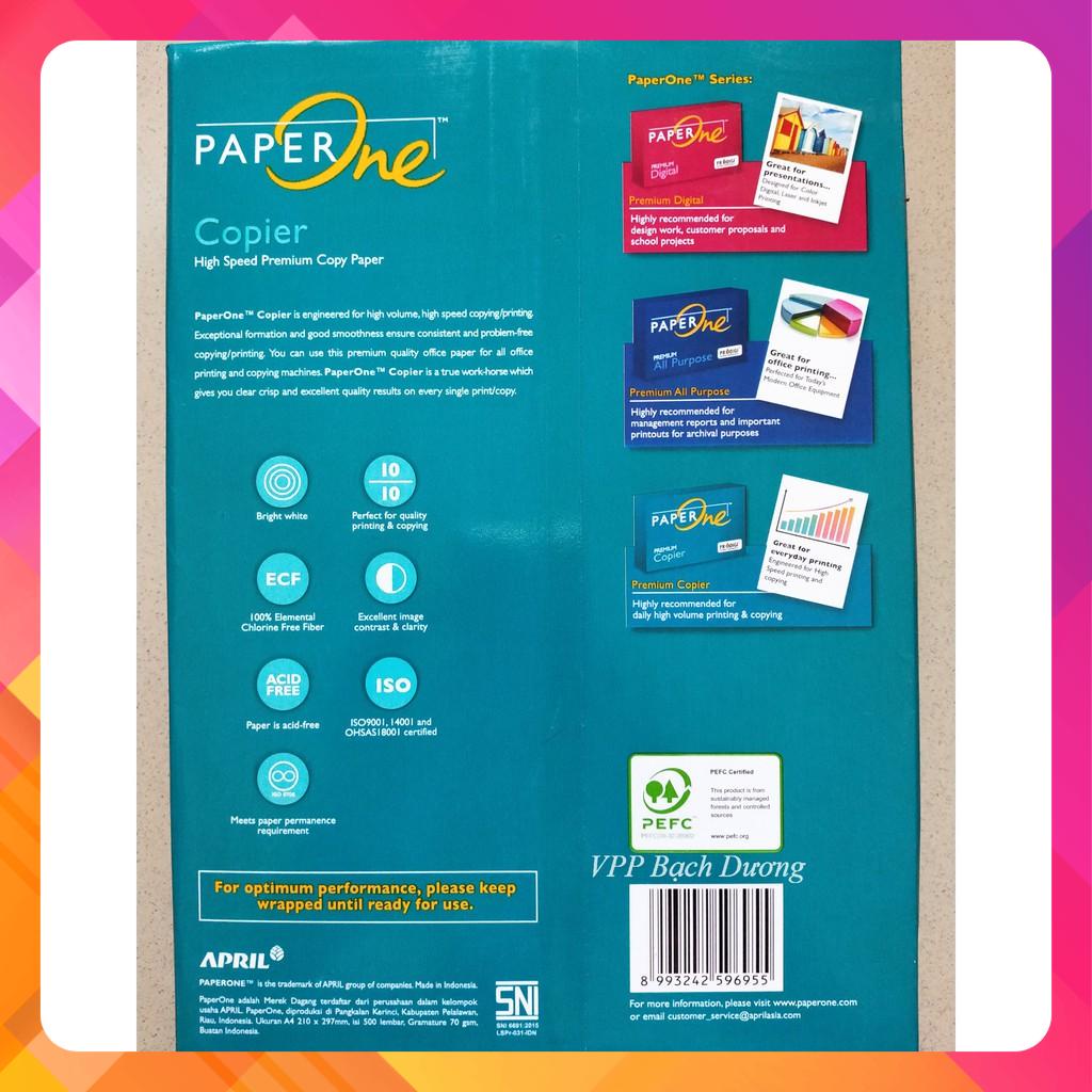 – Giấy PaperOne A4 ĐL70 Rất thích hợp dùng để in ấn văn bản, photo, máy in laser, máy in phun