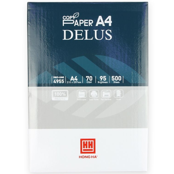 Văn Phòng Phẩm > Sổ & Giấy Các Loại > Giấy In || Giấy Photo Delus A4 70g/m2, ISO 95 Hồng Hà 4955Còn hàng