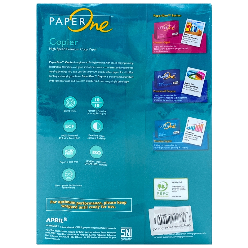 Giấy Photo Paper One A5/70 Sản phẩm sử dụng chất liệu giấy có bề dày tốt, bề mặt láng mịn, bắt mực êm, độ cản quang của giấy cao hơn do đó giảm hiện tượng nhìn thấu trang và cho phép sử dụng cả hai mặt giấy một cách toàn diện nhất. Chất liệu giấy an toàn, không chứa chất gây độc hại và mùi khó chịu, thân thiện với môi trường và giúp bảo vệ sức khỏe người dùng. Sản phẩm có thiết kế khổ giấy A5, thích hợp sử dụng làm giấy in, photo trong các văn phòng hoặc trong gia đình. Giấy có độ sắc nét cao, cho phép in, photocopy ra những văn bản, hình rõ nét. Bạn cũng có thể sử dụng để viết, vẽ sơ đồ hoặc phác thảo các bản vẽ một cách đơn giản và nhanh chóng.