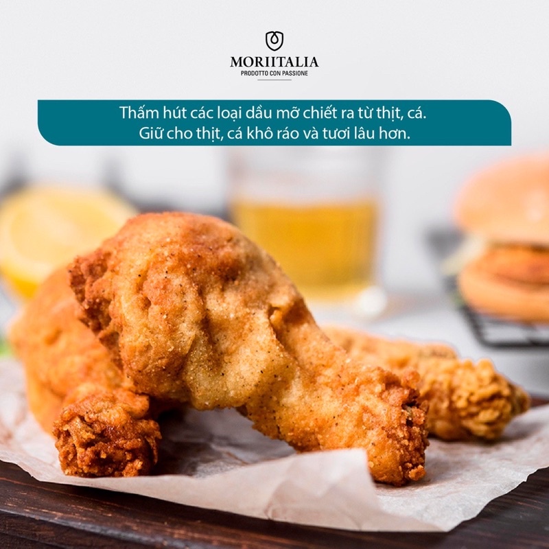 + Thấm hút các loại dầu mỡ chiết ra từ thịt, cá. Giữ cho thịt, cá khô ráo và tươi lâu hơn.