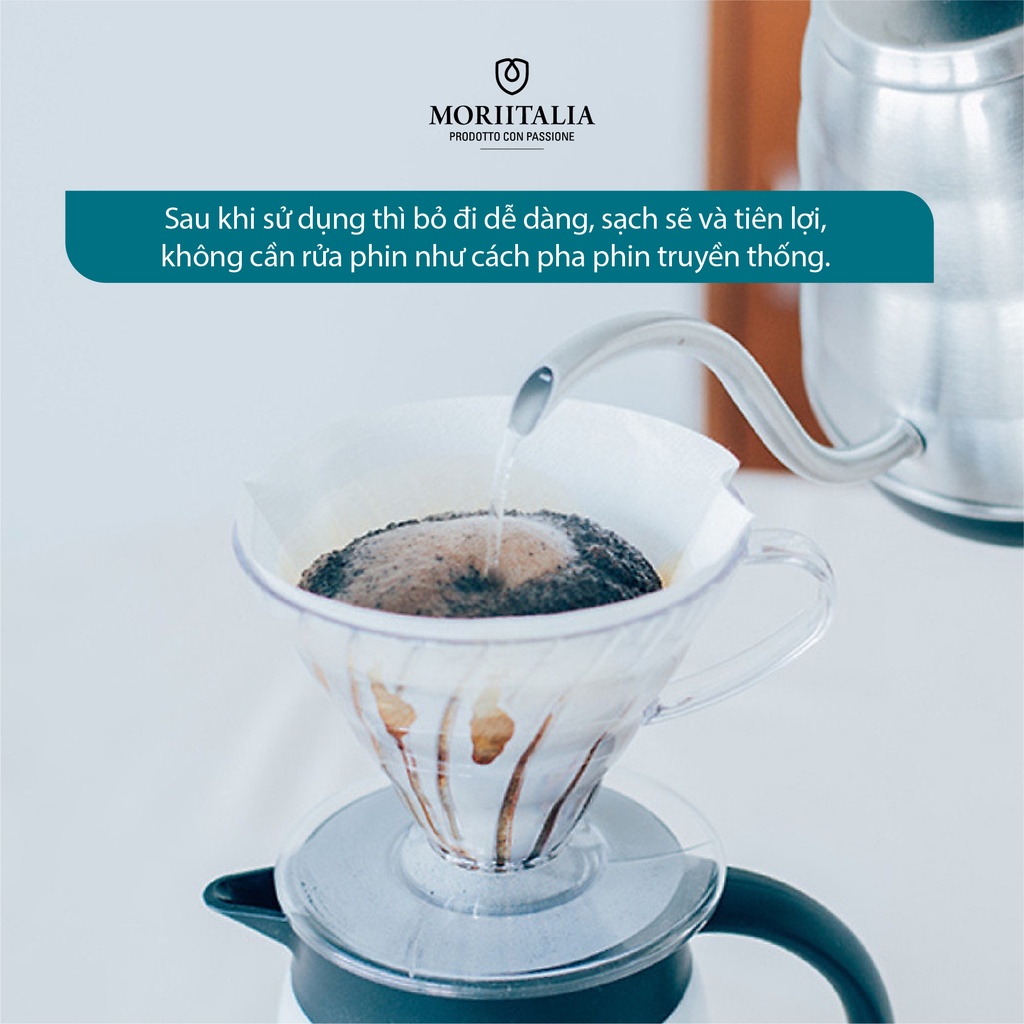 + Sử dụng xong có thể lấy cả giấy lọc bỏ đi, sạch sẽ và tiên lợi, không cần rửa phin như cách pha phin truyền thống.