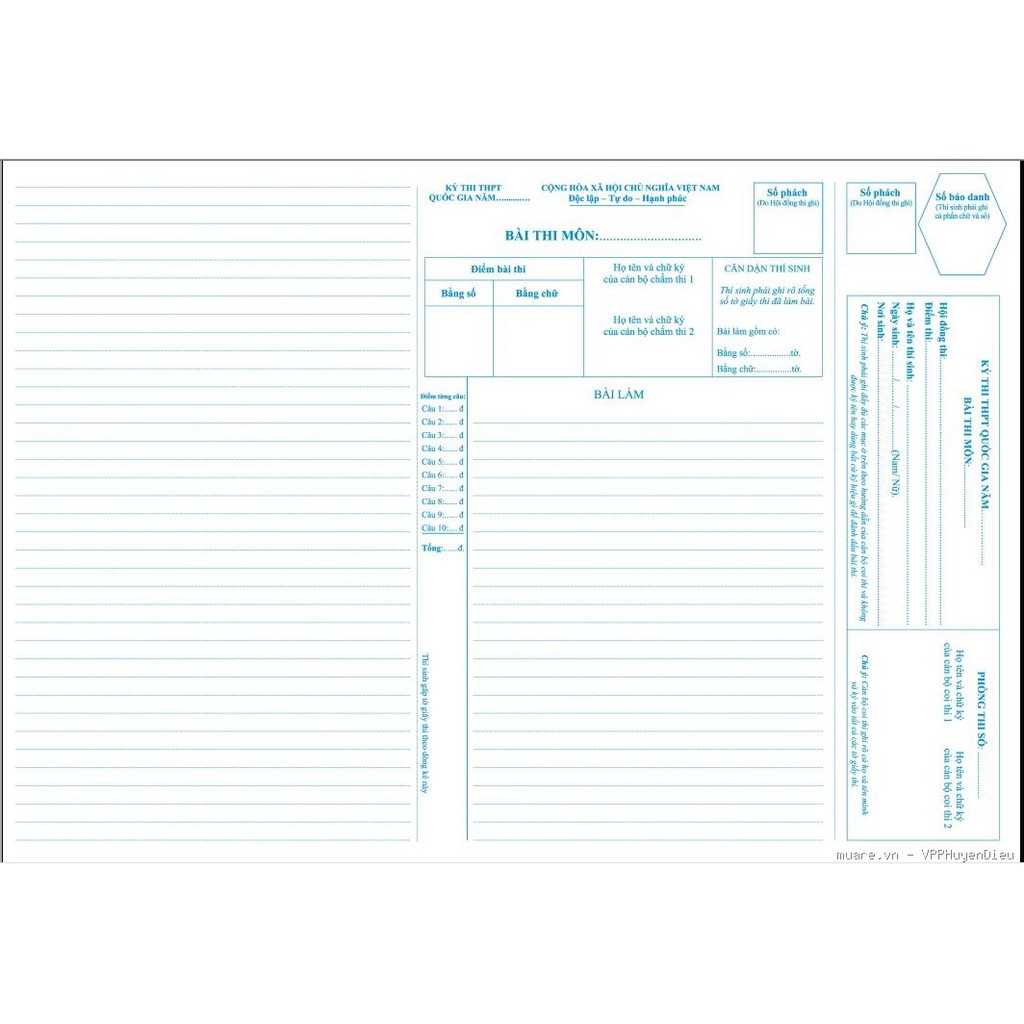 Giới thiệu Giấy thi đại học, giấy thi khổ A3 chuẩn mẫu bộ giáo dục