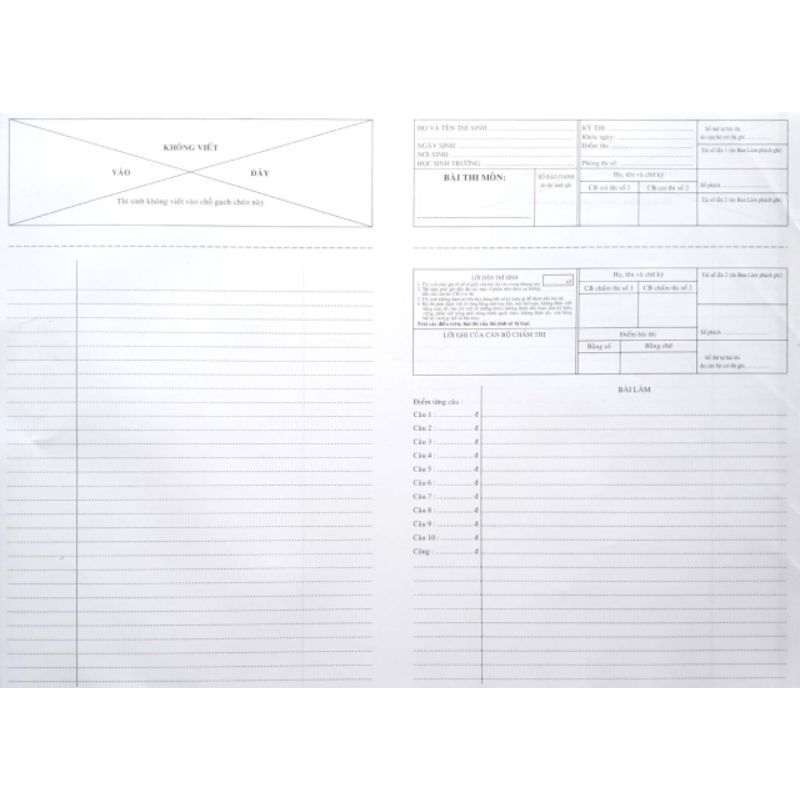 Giấy Thi A3 phách ngang, phách dọc- Giấy thi A3 theo mẫu của Bộ Giáo dục và Đào tạo