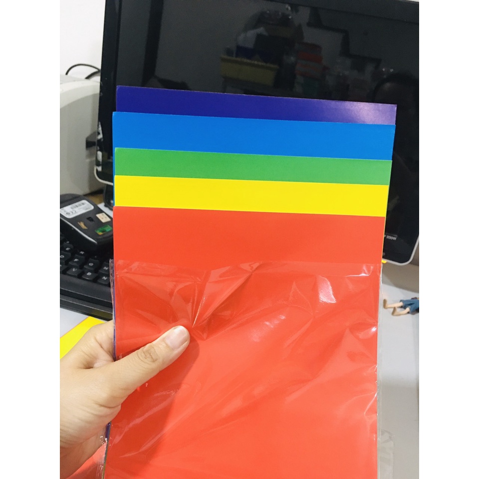 - Màu bóng 17 x 22cm có keo dán sẵn. ( 5 tờ 5 màu)