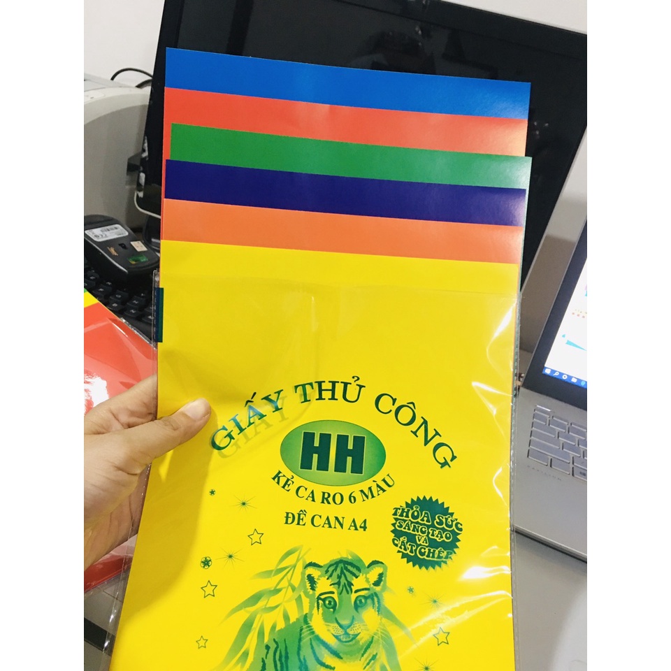 GIẤY THỦ CÔNG HH CÓ KẺ- ĐỀ CAN MÀU BÓNG CAO CẤP ( 5 mầu)Giấy thủ công HH 5 màu được làm từ chất liệu giấy mềm mịn, trơn, sáng bóng, an toàn cho sức khỏe người sử dụng và thân thiện với môi trường.
