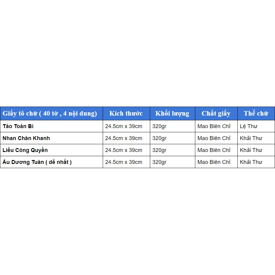 Văn Phòng Phẩm > Sổ & Giấy Các Loại > Giấy In || Giấy tô chữ luyện nét mô phỏng danh giaCòn hàng