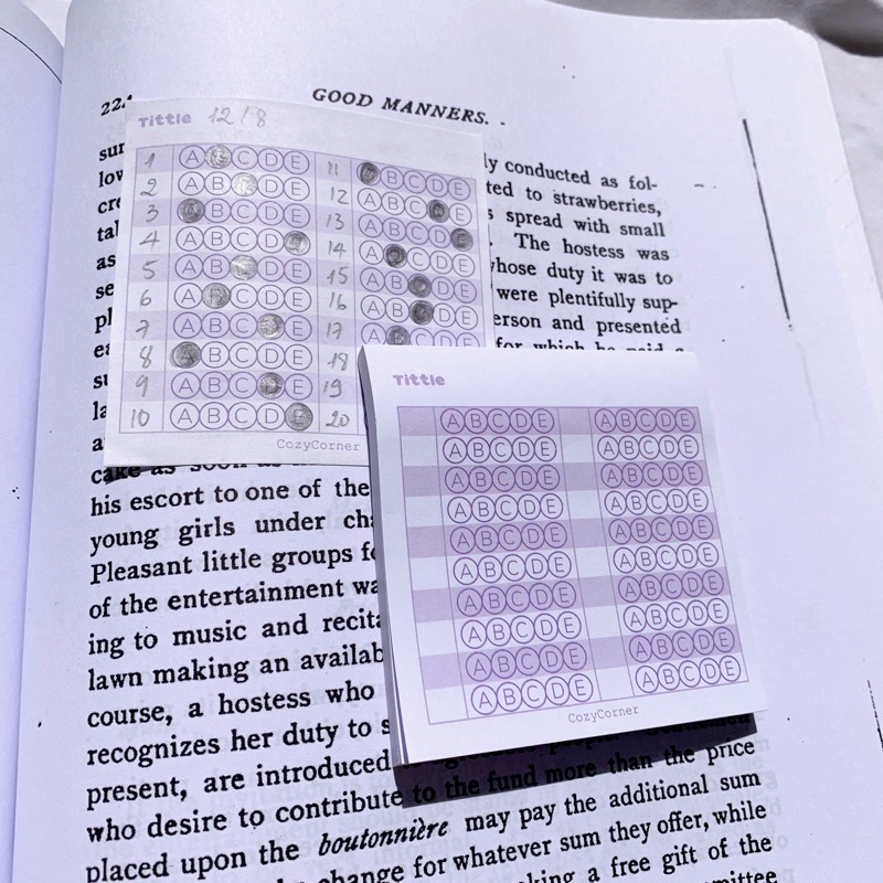 Giấy trắc nghiệm sticky note multiple choice OMR🌷Tittle là dòng sản phẩm giấy note trắc nghiệm của CozyCorner. Tittle có nghĩa là dấu chấm nhỏ, lấy cảm hứng từ nốt chấm của giấy trắc nghiệm.