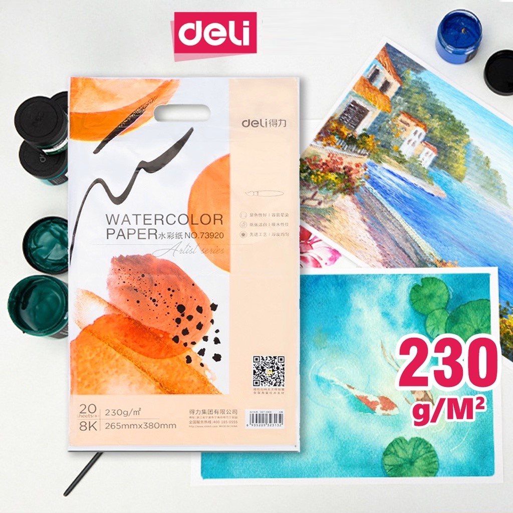 Giấy vẽ màu nước chuyên dụng Deli cao cấp - Khổ giấy đa dạng phù hợp nhiều nhu cầu hội họa khác nhau - 73917/73918/73920=======================================================================