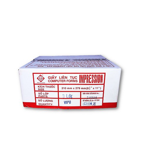 Quy Cách : 1 - 5 liên (210 x 279) A4 chia 2 - 1.500 tờ