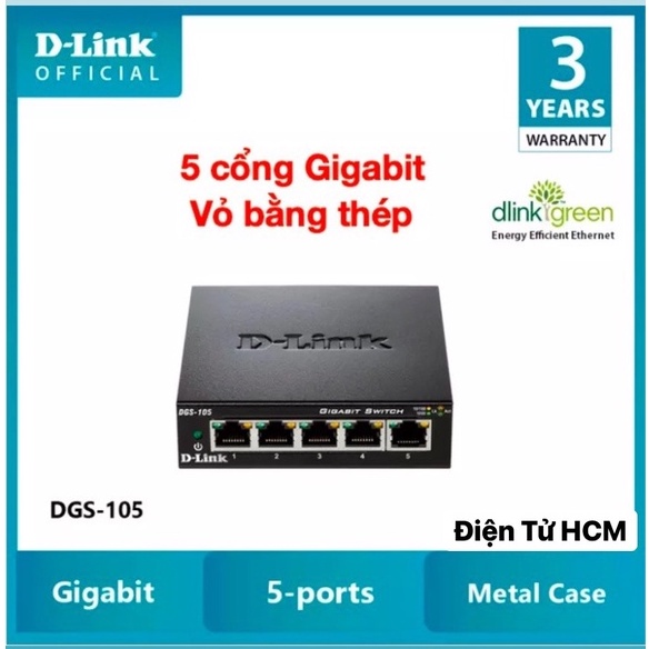 Gigabit Vỏ thép- Bộ chia mạng Switch 5 cổng RJ45 10/100/1000 Mbps-D-LINK DGS-105GL - Hàng Chính HãngD-LINK DGS-105 - Bộ chia cổng mạng 5 cổng 10/100/1000 Mbps