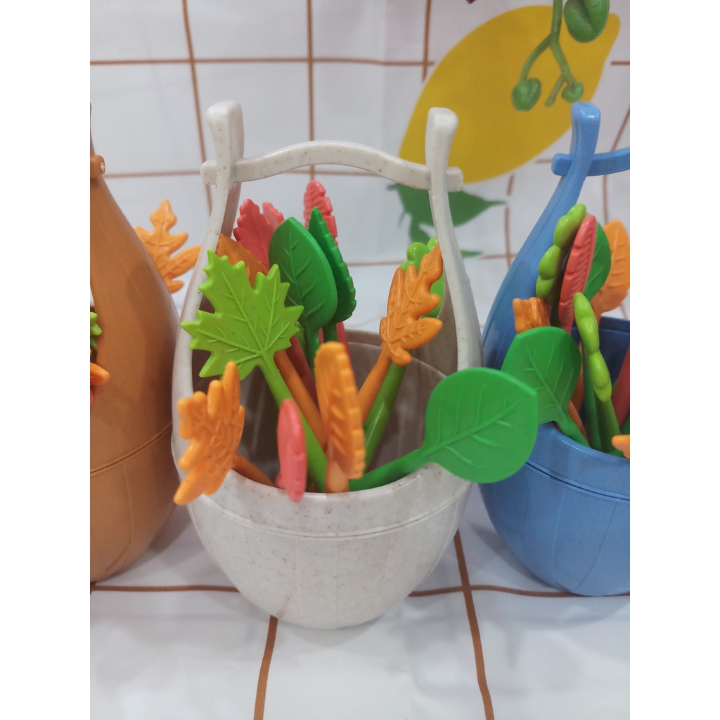 Nhà cửa & Đời sống > Bộ đồ bàn ăn > Dĩa || Giỏ 16 chiếc dĩa, nĩa xiên trái cây bằng nhựa lúa mạch cao cấp rất xinh xắnCòn hàng