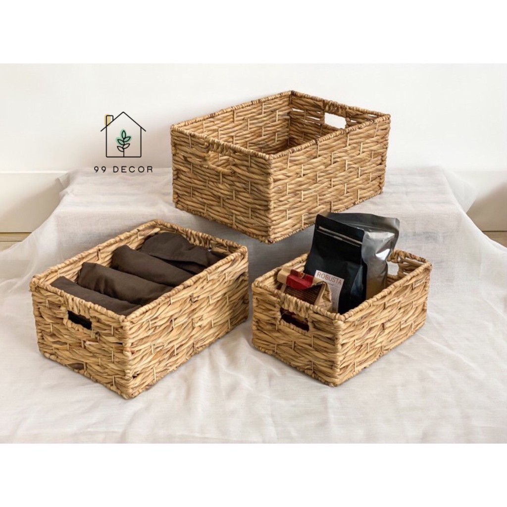 Giỏ Bèo Cói Hình Chữ Nhật Decor Trang Trí Nhà Cửa