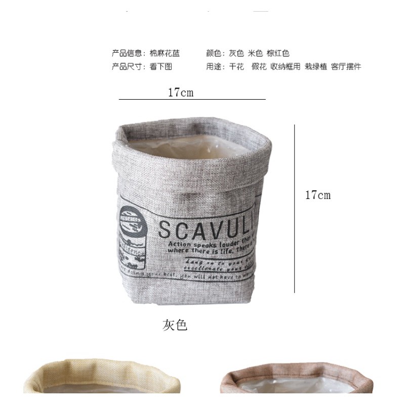 Giỏ bố chất liệu dầy, có thể decor hoa khô, có sẵn miếng lót nylon bên trong để bạn trồng cây ban công 🥰🥰🥰💥 Kích thước: 17 x 17cm