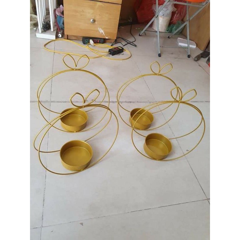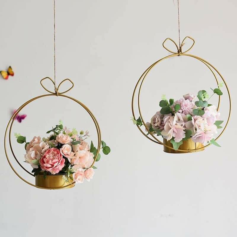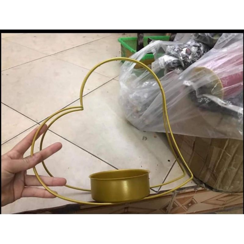giỏ cắm hoa chất liệu kim loại được sơn tĩnh điện màu vàng đồng.kích thước 30x35cm