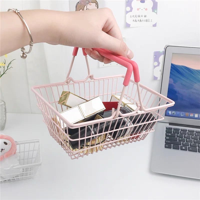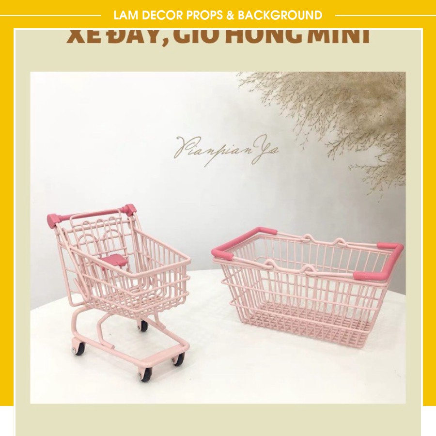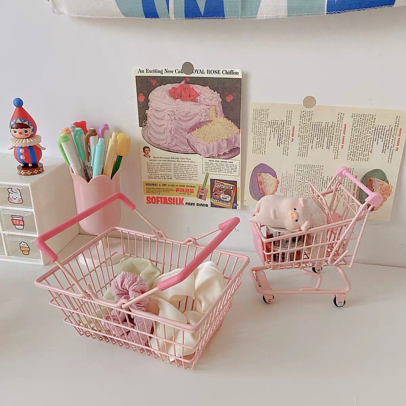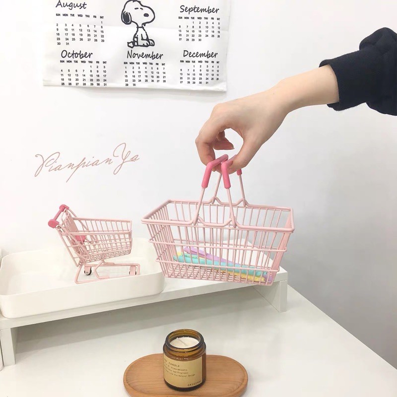 Giỏ Có Quai Màu Hồng Và Xe Đẩy Siêu Thị Mini Màu HồngNếu bạn đang tìm một chiếc giỏ xinh xắn để chụp ảnh sản phẩm như phu kiện, mỹ phẩm theo phong cách xinh xắn thì đừng quên Sắm ngay cho mình một chiếc giỏ hồng.