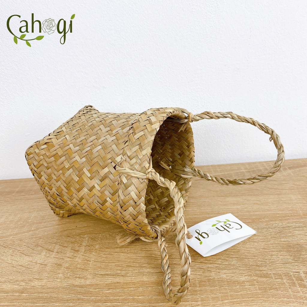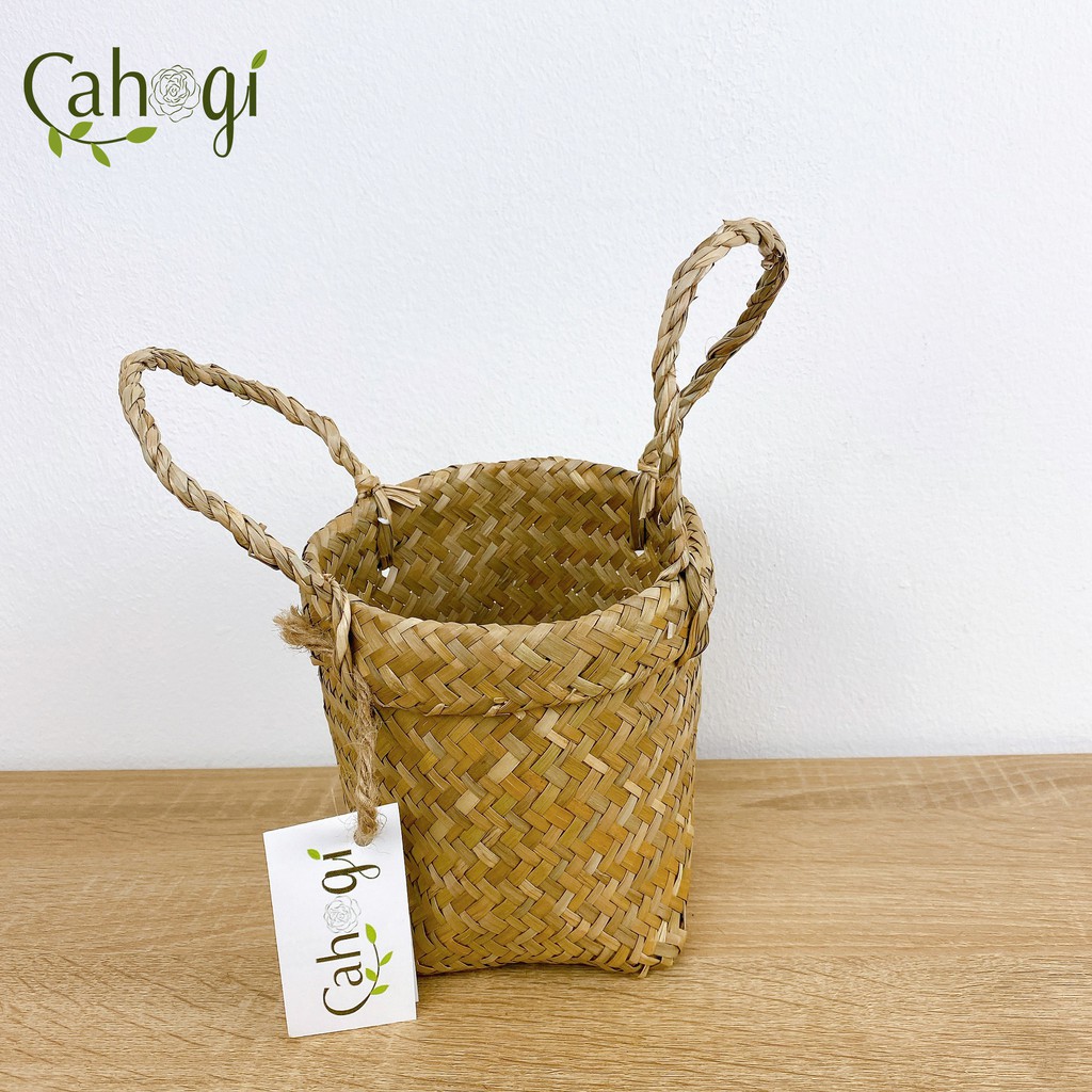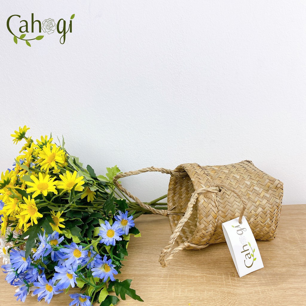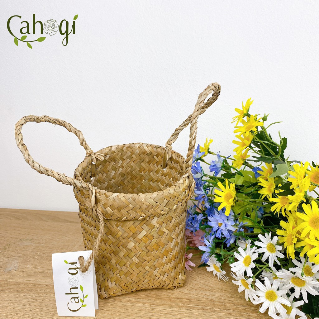 Giỏ cói Quai Xách Đáy Vuông 13x13 Cm Dùng Trong Cắm Cây Hoa Giả