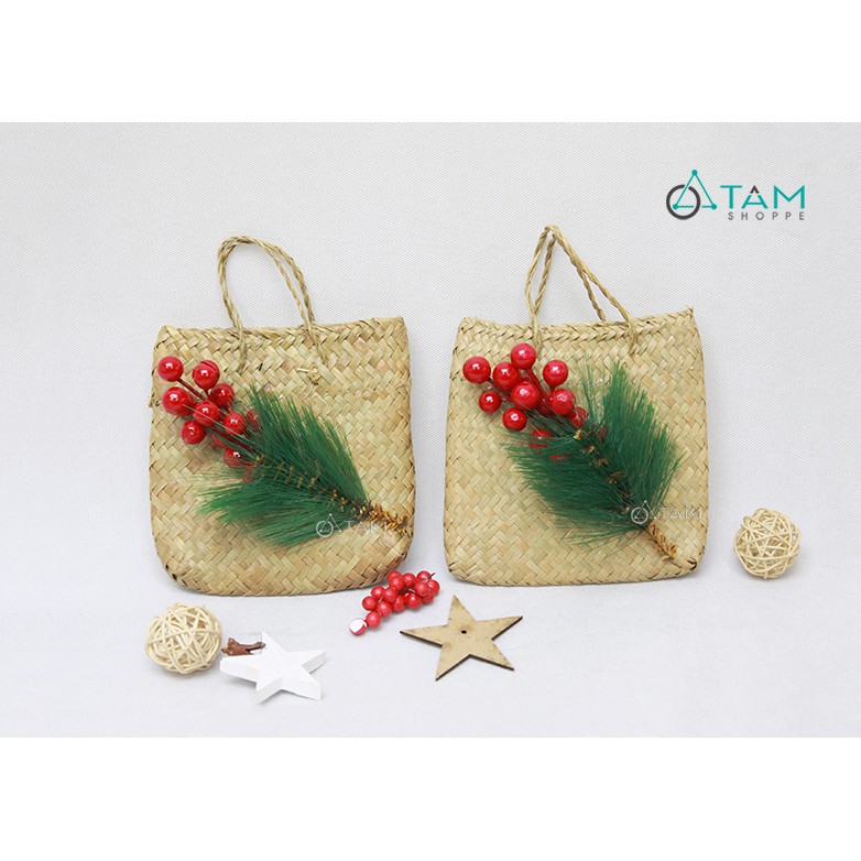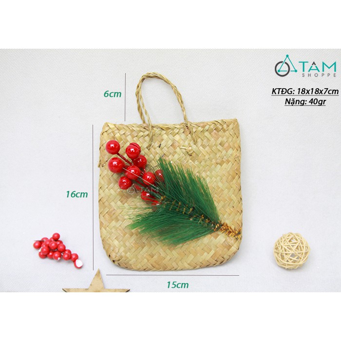 Giới thiệu Giỏ cói treo Noel handmade cành cherry X-PKTBIG-07