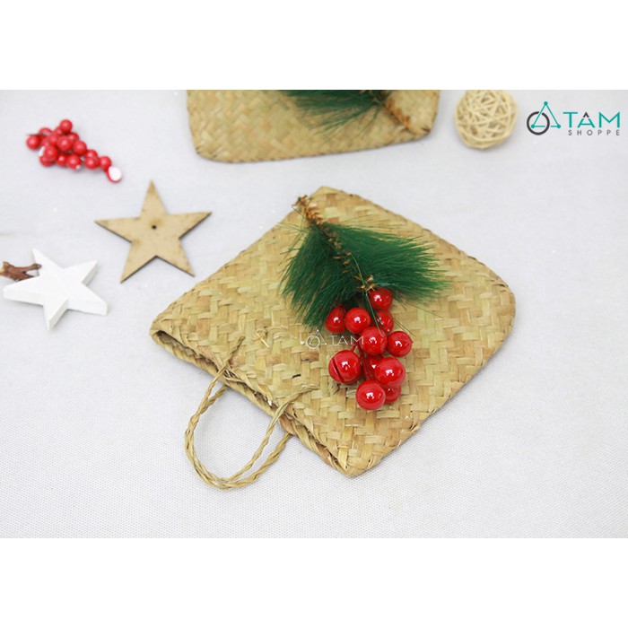 Giỏ cói treo Noel handmade cành cherry X-PKTBIG-07
