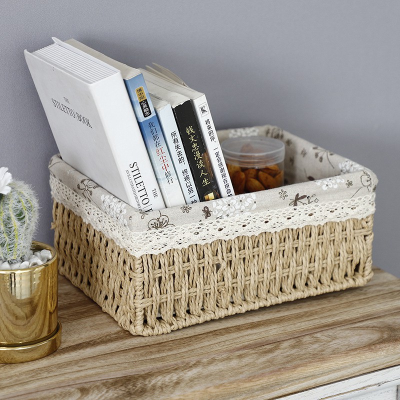 Nhà cửa & Đời sống > Bộ đồ bàn ăn > Khay, tấm lót bàn ăn || Giỏ cói vintage có vải lót hình chữ nhật trang trí nhà cửa (Rổ cói lót vải)Còn hàng